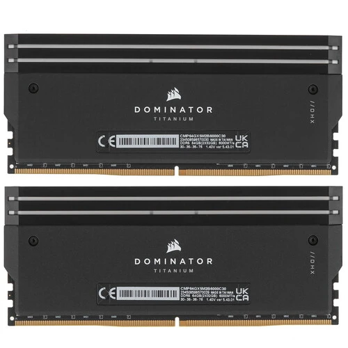 Оперативная память Corsair DOMINATOR TITANIUM RGB 64 ГБ, DDR5 Объем памяти: 2 штх32 ГБ Частота: 6000 МГц Тайминги: 30 - 36 - 36 - 76