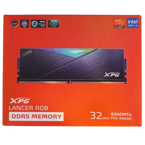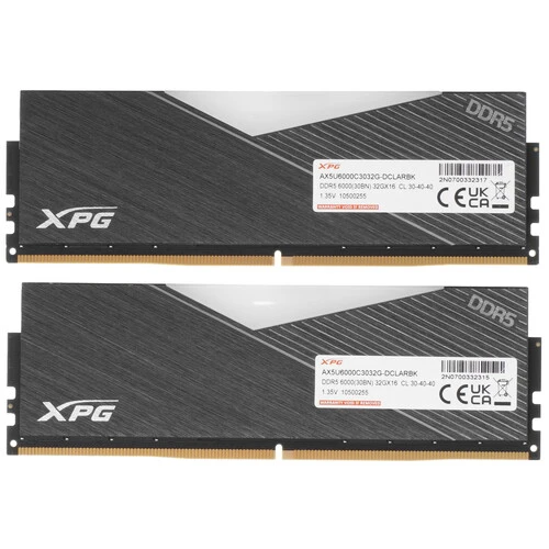Оперативная память ADATA XPG Lancer RGB 64 ГБ, DDR5 Объем памяти: 2 штх32 ГБ Частота: 6000 МГц Тайминги: 30 - 40 - 40